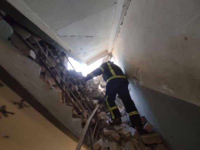 Нагадаємо, що 16 березня внаслідок потрапляння уламків снаряду у житловий будинок, стався обвал на 12-му та технічному поверхах, також було частково пошкоджено сусідній 9-поверховий будинок. Після обстеження технічного стану будинку експерти виявили, що несучі конструкції не пошкоджені і він може бути відновлений.