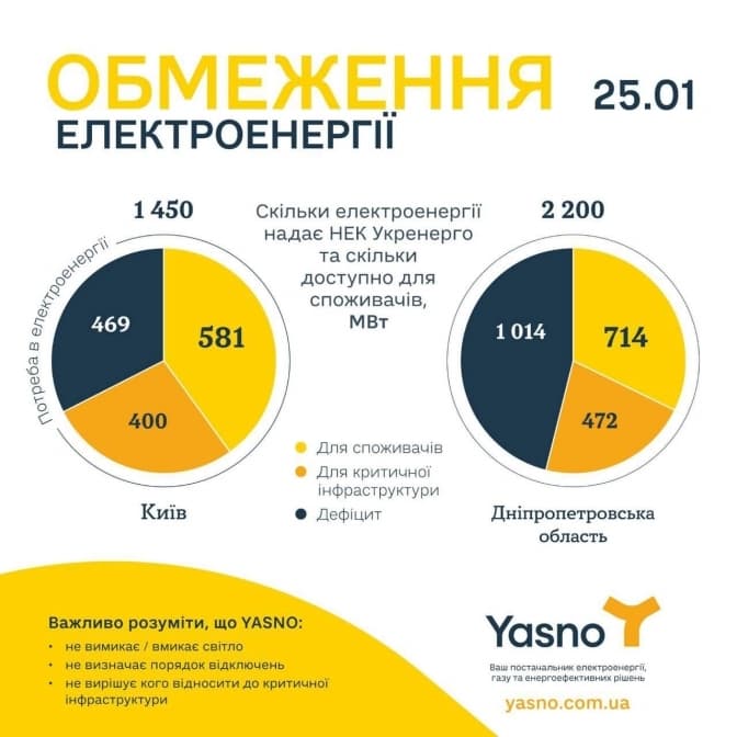 «На завтра передбачені такі обмеження: до 981 МВт вдень, 642 МВт вночі. Це дасть змогу забезпечити 65% потреб споживачів в електроенергії», — повідомив гендиректор Yasno Сергій Коваленко у Facebook.