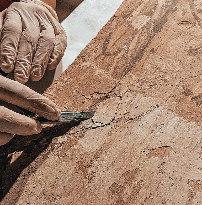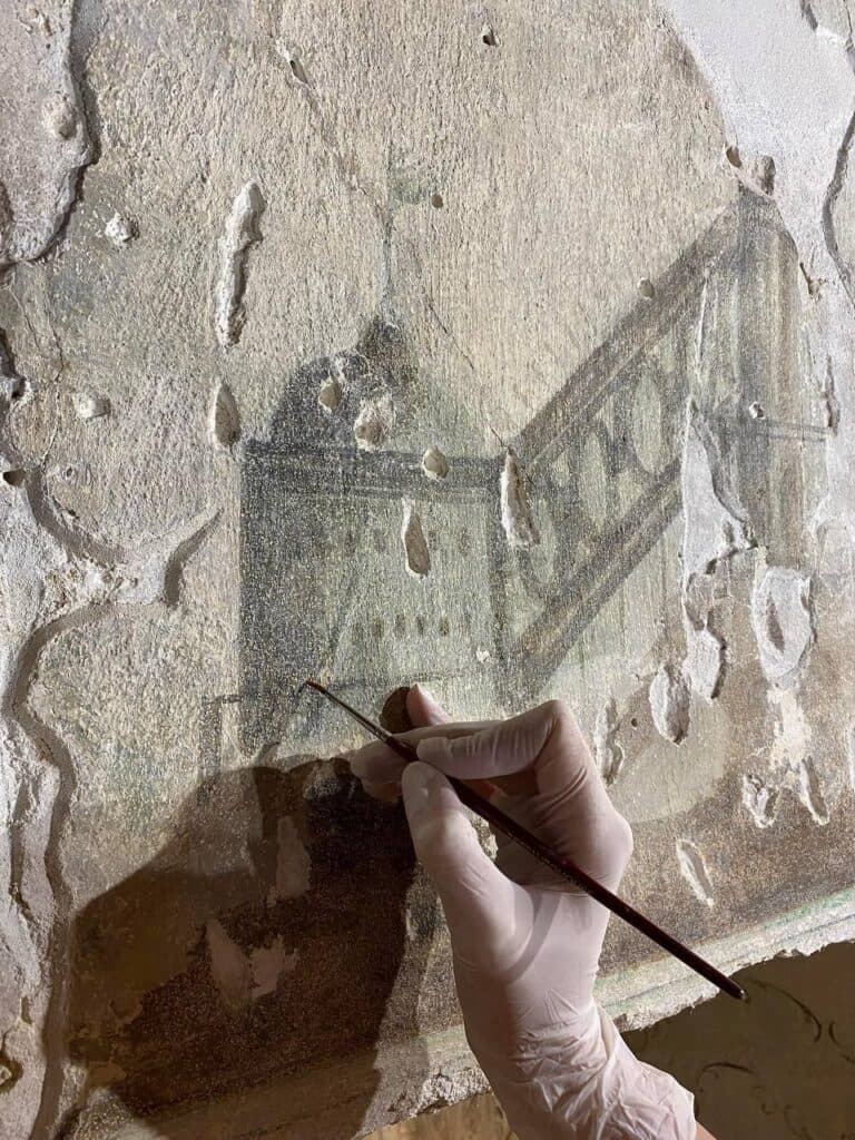 Фрагменти орнаментальної композиції перенесли методом трансферу на нову основу, а вторинне перекриття обережно демонтували. Провели низку консерваційно-реставраційних робіт, які забезпечили естетичне збереження та експонування поліхромії. Між виявленими ренесансними балками та класицистичними розписами період у 200 років.