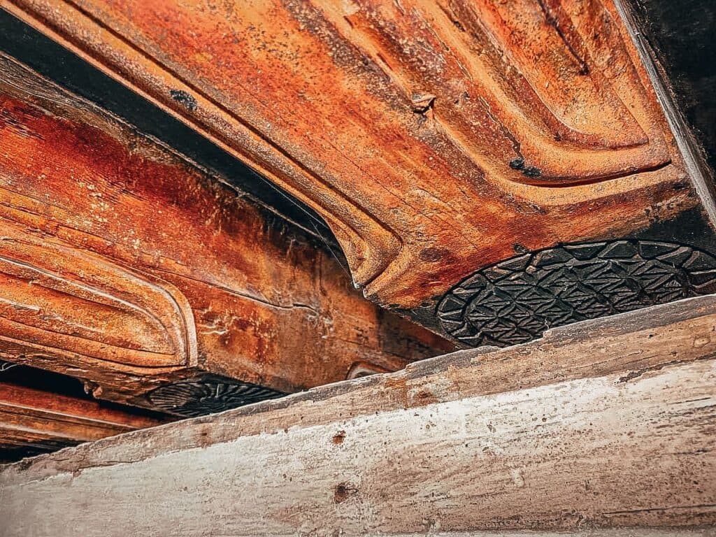 Іншою несподіванкою для дослідників була центральна балка на стелі. На ній вказано рік – 1654 р. та різночасові написи, де можна розчитати напис латинню – «BENEDIK DOMINE … HABITATIONEM ISTAM».
