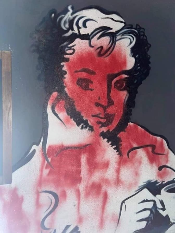 У Харкові на стіні закладу «Львівські круасани» мурал із зображенням російського поета Олександра Пушкіна обмалювали червоною фарбою. Активісти заявили, що власник закладу – львів’янин, погрожує їм за розмальований стінопис.