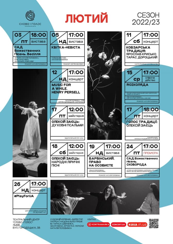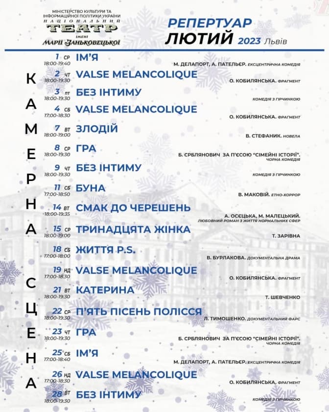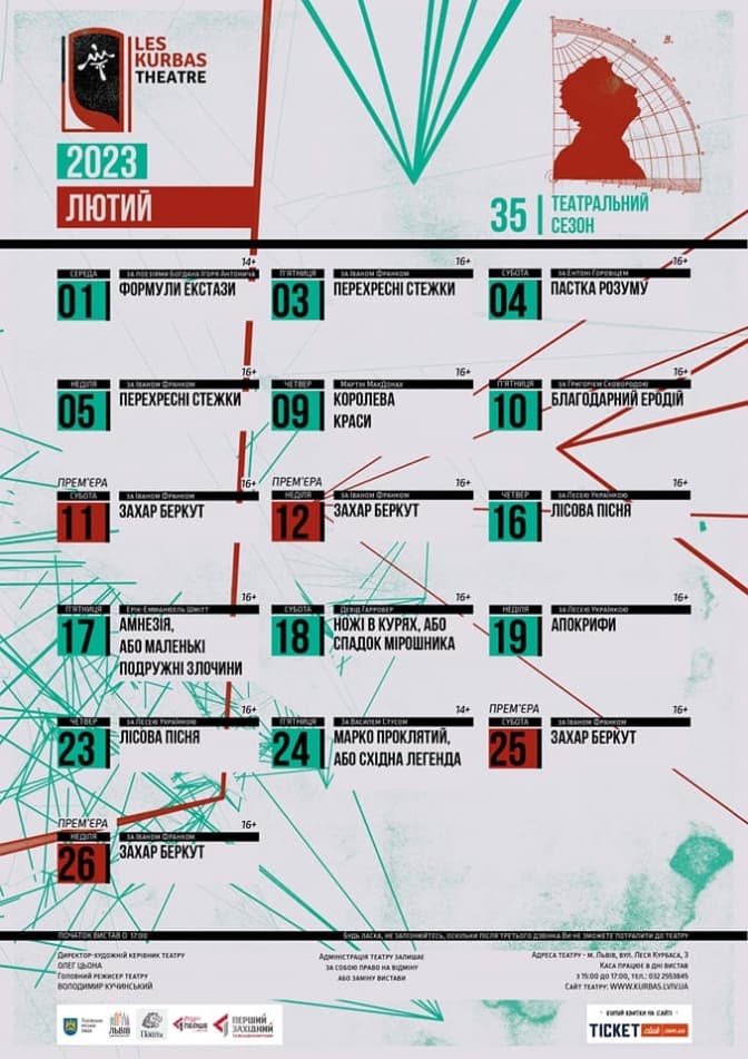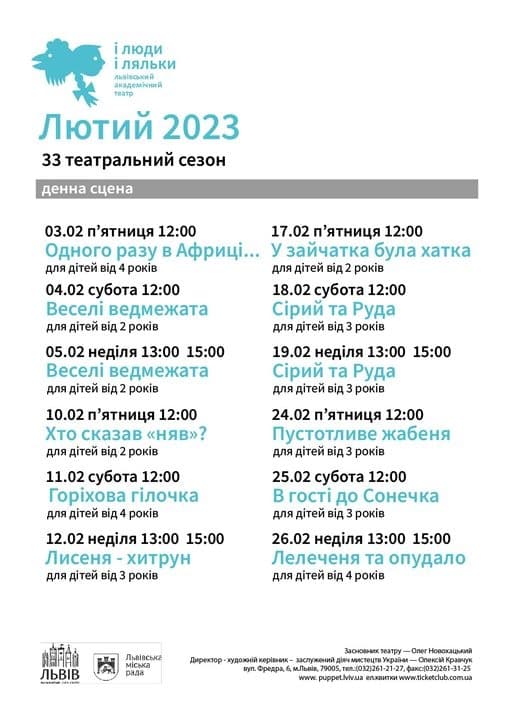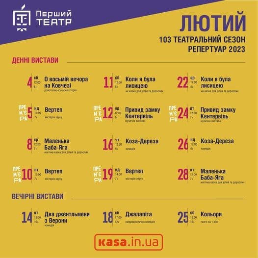 У лютому театр пропонує своїм глядачам такі події: