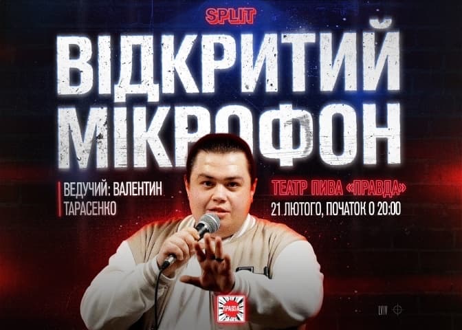 Відкритий мікрофон – це форма стендап-шоу, де може виступити абсолютно кожен. «Split Comedy» запрошують подивитися на те, як досвідчені коміки перевіряють свої нові жарти, а новачки роблять свій перший крок в стендап-комедію.