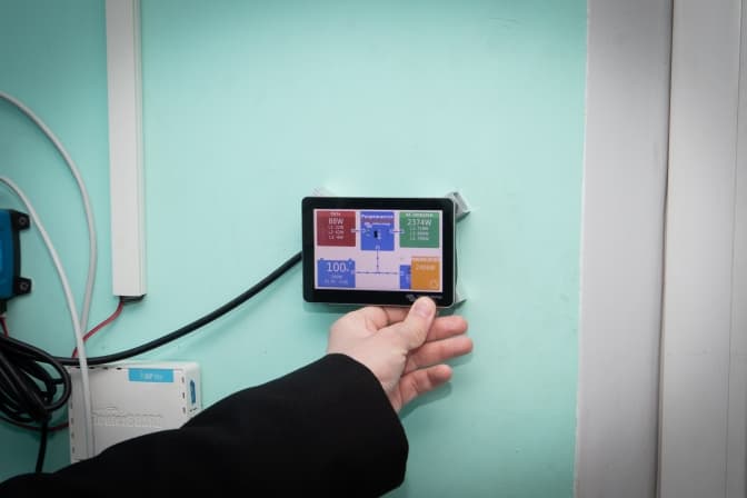 «Мешканці будинку вже не вперше беруть участь у міській програмі співфінансування енергоефективних робіт «70/30%». Тут відремонтували індивідуальний тепловий пункт, встановили енергозберігаючі вікна та двері в місцях загального користування, утеплили фасад, встановили три гібридні інвертори по 10 кВт і 30 кВт батарею. І це обладнання може заряджатись або від мережі, або від сонячних панелей, що встановлені на даху. Від батарей автономно може повністю працювати ІТП (до 48 годин), а з освітленням МЗК і зовнішнім – на батареях це все може працювати добу. Загальна вартість виконаних робіт – 2,5 млн грн», – зазначив Петро Пантелеєв.