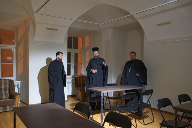 «Пункт незламності» відкриває двері в офісі Ставропігії Вселенського Патріархату – стилобатній (нижній) частині Андріївської церкви. Це приміщення, вбудоване у пагорб і з трьох сторін надійно захищене великими шарами бетону та ґрунту, є як безпечним укриттям у разі повітряної тривоги, так і енергоефективним», – кажуть у Ставропігії.