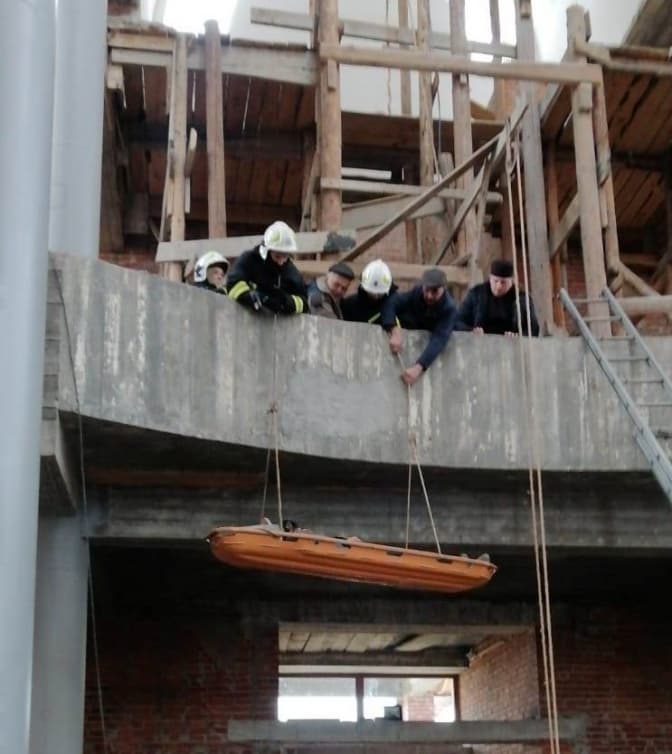 «Рятувальники за допомогою висувної драбини, мотузок та рятувальних нош зняли травмованого чоловіка з висоти орієнтовно 10 м та передали медикам, а далі допомогли транспортувати чоловіка до карети швидкої допомоги.