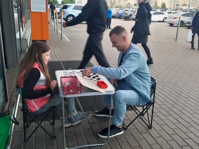 З перших місяців війни вона виходила грати з перехожими в шашки поблизу супермаркету на Позняках. За правилами, якщо суперник програє – кладе будь-яку суму в коробку з написом «На ЗСУ. Граємо – допомагаємо». Таким чином, 11-річній чемпіонці вдалося зібрати вже понад 163 тисячі гривень!