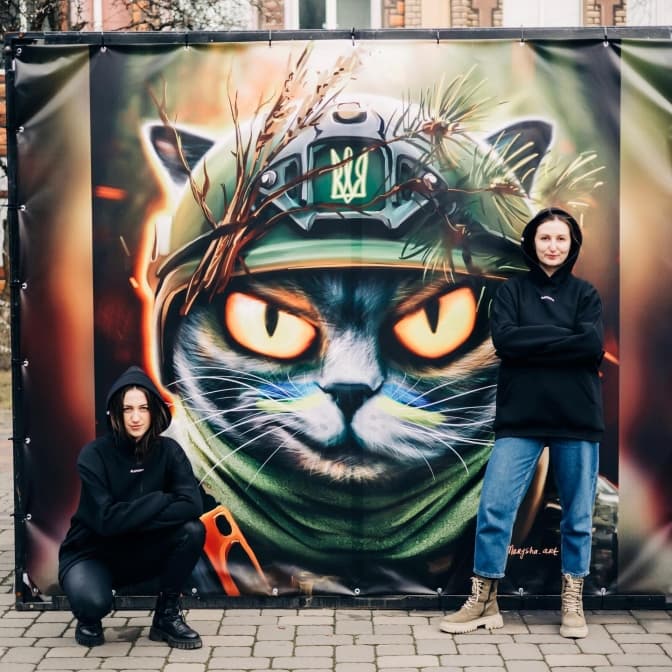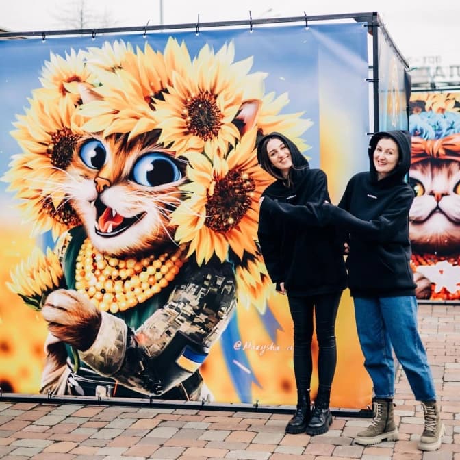 У Києві на артзаводі «Платформа» відкрили виставку ілюстрацій котів-захисників. Тут можна відшукати пухнастиків у кожушках, віночках та каска; котиків-пожежників, поліцейських та військових. Їх створила художниця Маріанна Пащук.