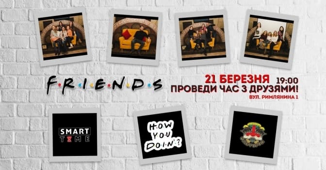 Smart Time – розумний формат дозвілля. Процес гри робить звичайне часопроведення в компанії друзів більш корисним й не менш веселим. Цього разу гра тематична, а саме 36 питань про улюблений для мільйонів глядачів серіал «Друзі». Реєстрація тут.