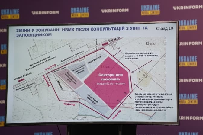 «У нас є Національний історико-меморіальний заповідник «Биківнянські могили». Він знаходиться на виїзді з Києва на Броварському шосе. Це місце пам'яті й поховання жертв сталінських репресій. Ми думаємо, що доречно поруч облаштувати кладовище. Підкреслюю, не у самому заповіднику, а поруч. Там є дві ділянки в лісі, де можна створити місце вшанування наших загиблих військових. Це найбільш швидкий шлях, щоб там вже можна було починати облаштовувати кладовище», – сказав міністр культури та інформаційної політики України.