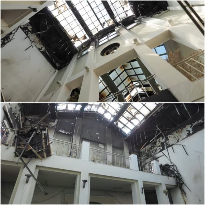 Віконний фонд знищений на 50%, дах є лише подекуди. Відновлювальні роботи тривають в межах наявного фінансування – вдалось засклили кілька вікон, ще кілька заклеїли плівкою, покрівлю відновили лише в приміщеннях, де триває навчальний процес.