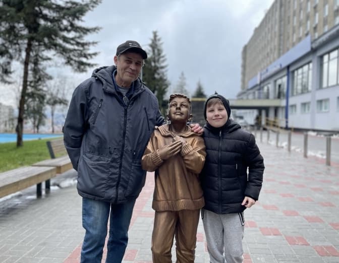 Скульптура – це реальний хлопчик, 12-річний Тимофій Чернишков. Наприкінці січня його батькові – Олександру Чернишкову – наші лікарі пересадили легені», – зазначається в повідомленні Об’єднання.