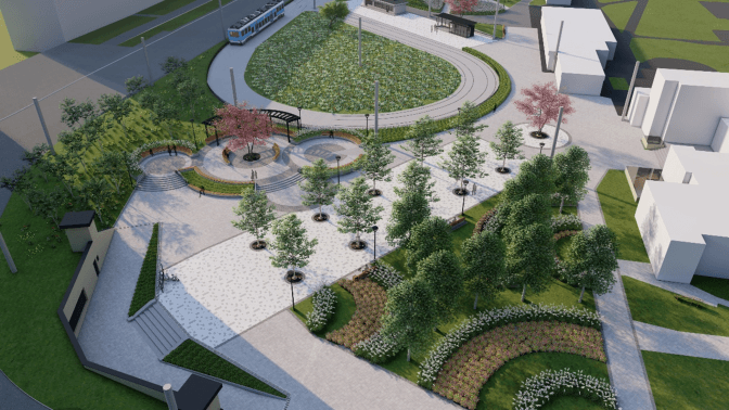 Також присутнім було продемонстровано проєкт облаштування скверу біля Героїв Дніпра на Оболоні, який наразі проходить громадські слухання: