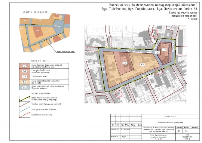 «Там є споруди, що мають демонтувати, для цього підписані меморандуми з власниками будівель, зокрема власником найбільшої – компанією «Моноліт»– вона також виступає одним із ініціаторів ДПТ. З магазином «Кури-гриль» та ветклінікою маємо попередні домовленості про співпрацю: клініці надають інше приміщення і забудовник там має зробити ремонт, «Кури-гриль», відповідно до меморандуму, переселяють в нову забудову», – додає він.