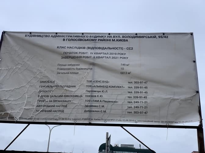Припис про зупинку будівельних робіт місто винесло уповноваженому органу з утримання будинку - ОСББ «Володимирська, 93». Саме це об'єднання вказано на паспорті об'єкта. Згідно з ним, забудовник планує провести капітальний ремонт будівлі.