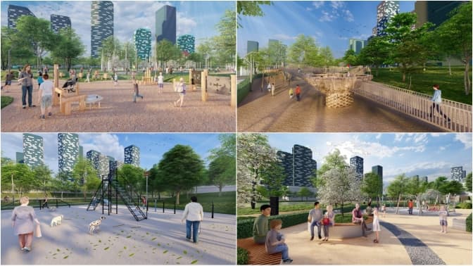 У релізі опубліковано лише окремі ескізи проєкту парку.