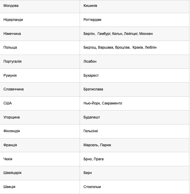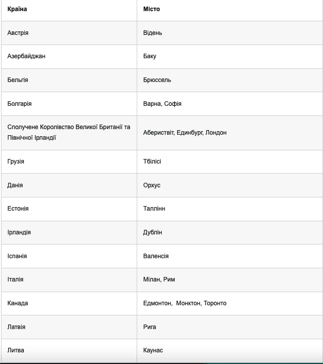 Зокрема, домовилися з представниками Берна (Швейцарія), Братислави (Словаччина), Кишинева (Молдова) та Роттердама (Нідерланди). Наразі передбачили, що тимчасові екзаменаційні центри створять в таких закордонних населених пунктах: