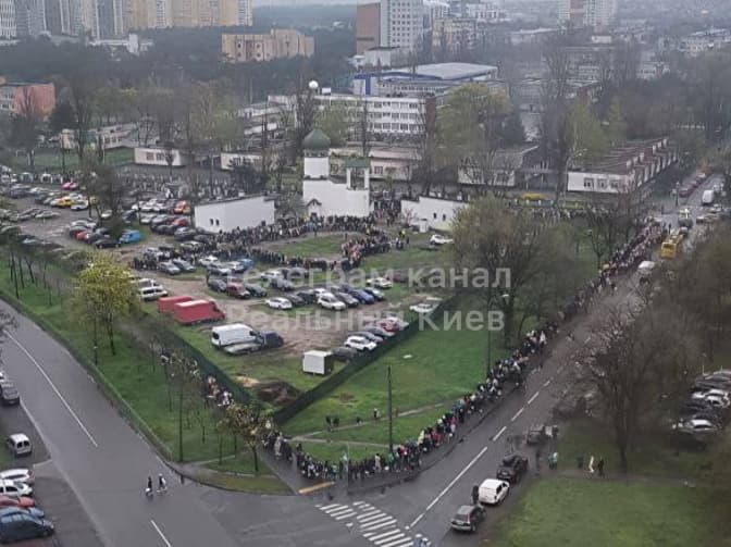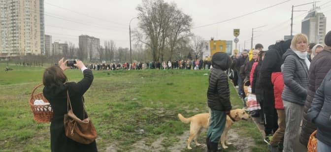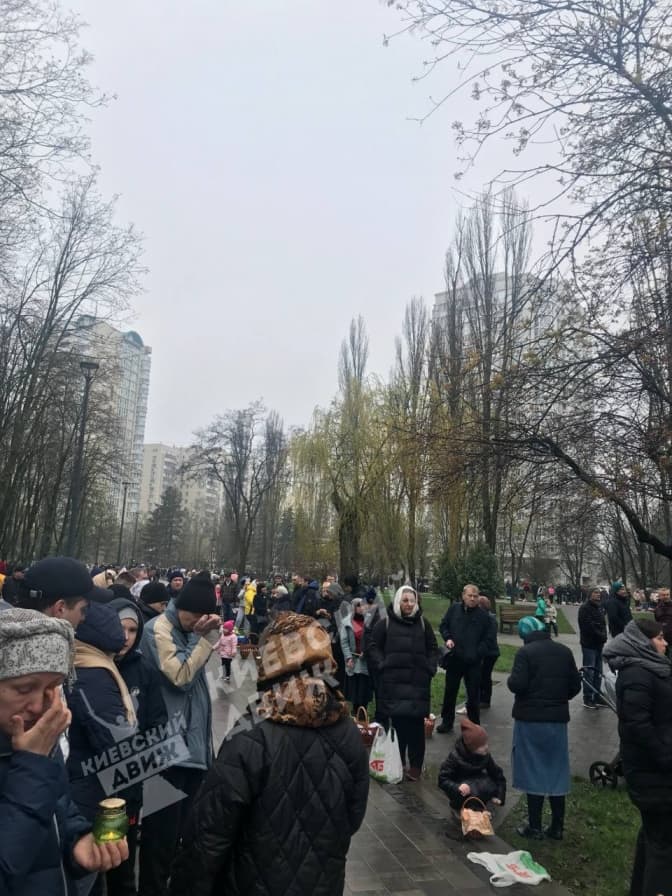 Величезні черги вірян, які прийшли освятити великодні кошики, спостерігались також в церквах ПЦУ інших районів столиці. На опублікованих фото можна побачити чергу до храму, яка розтягнулась не менш ніж на 300 м.