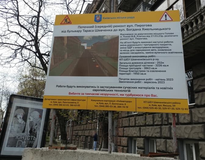 На інфощиті вказано, що «роботи будуть виконуватися із застосуванням сучасних матеріалів та новітніх європейських технологій». Очікується, що ремонт закінчать у вересні 2023 року.