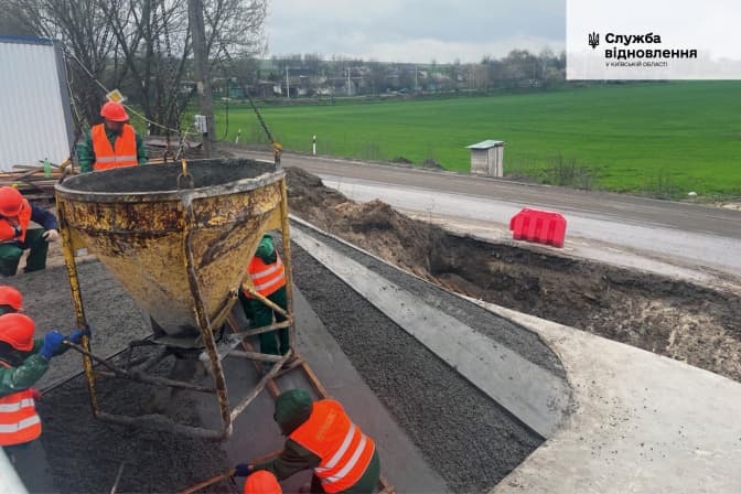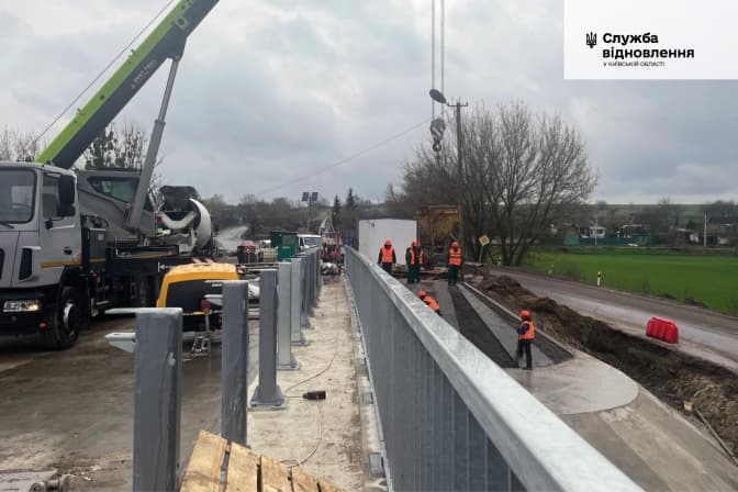 На Київщині продовжують відбудовувати 50-метровий міст у Фастівському районі. Про це звітують у службі відновлення і розвитку інфраструктури у Київській області.