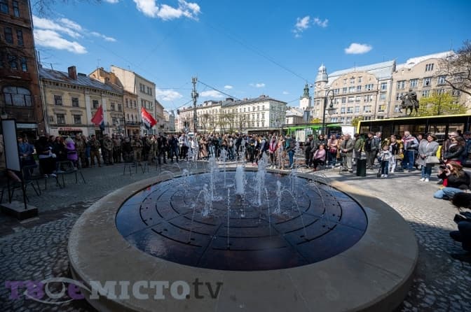 Фонтан на площі Галицькій у Львові присвятили загиблому Герою України «Да Вінчі» Дмитру Коцюбайлу та всім учасникам російсько-української війни. Відповідне рішення раніше затвердили на засіданні виконавчаного комітету ЛМР.