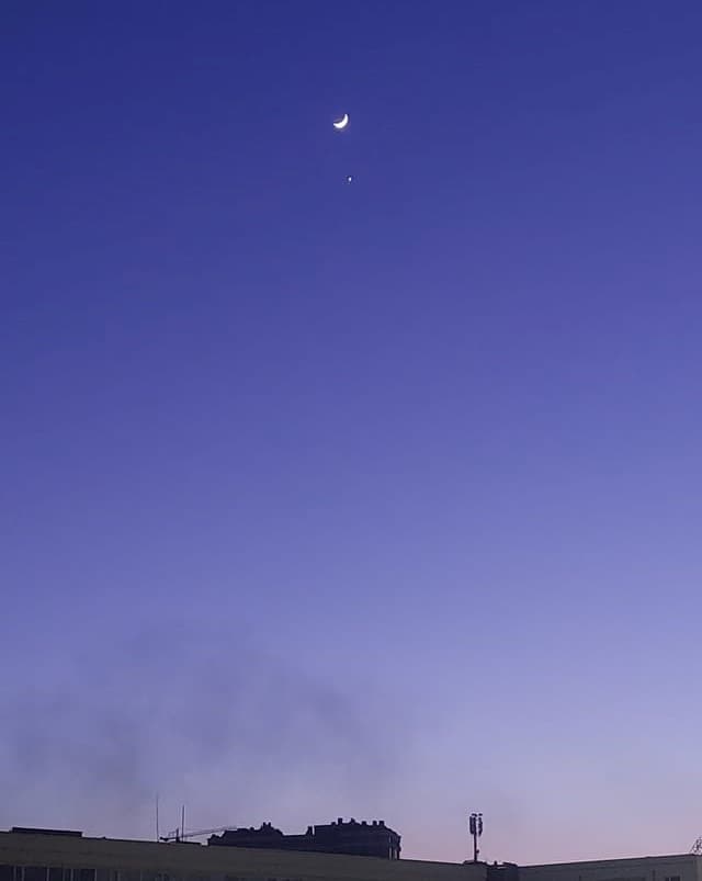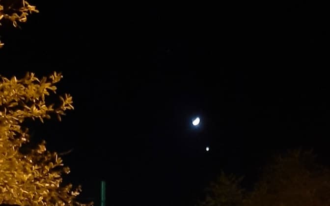 Крім цього, вчора на небі можна було спостерігати ще одне космічне явище - зустріч Місяця та планети Венери: Місяць і Венера практично «поєдналися» одне з одним.