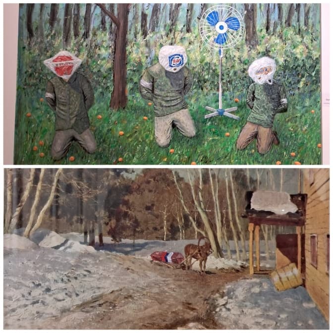 У Центрі сучасного мистецтва «Білий світ» проходить виставка «Зустріч у бомбосховищі». В експозиції представлені гостро-іронічні роботи Ігоря Гусєва та Сергія Божка, які відтворили реальні події через призму суспільного та власного сприйняття.