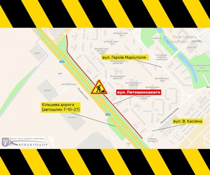 На вулиці Композитора Лятошинського у Голосіївському районі столиці частково обмежено рух транспорту до 4 червня. Про це повідомила Київська міська державна адміністрація, посилаючись на Київавтодор.