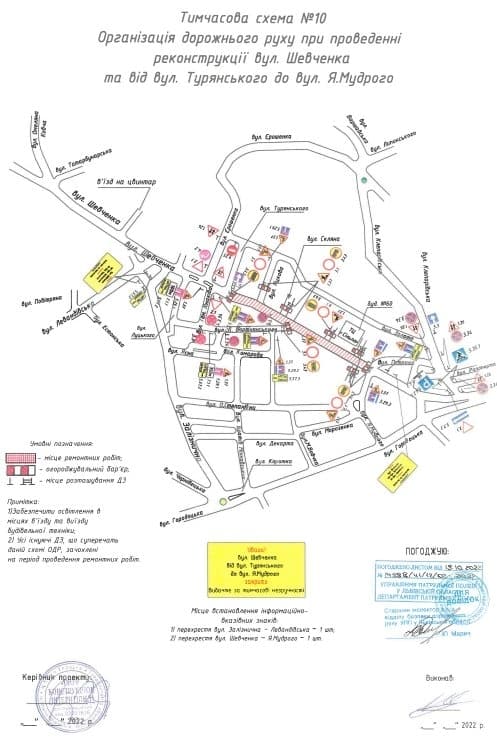 Згідно з тимчасовою схемою організації дорожнього руху, вул. Шевченка перекрили від вул. Бортнянського до вул. Турянського, проїзд вул. Яцкова на вул. Шевченка та вул. Бортнянського на вул. Шевченка заборонений.