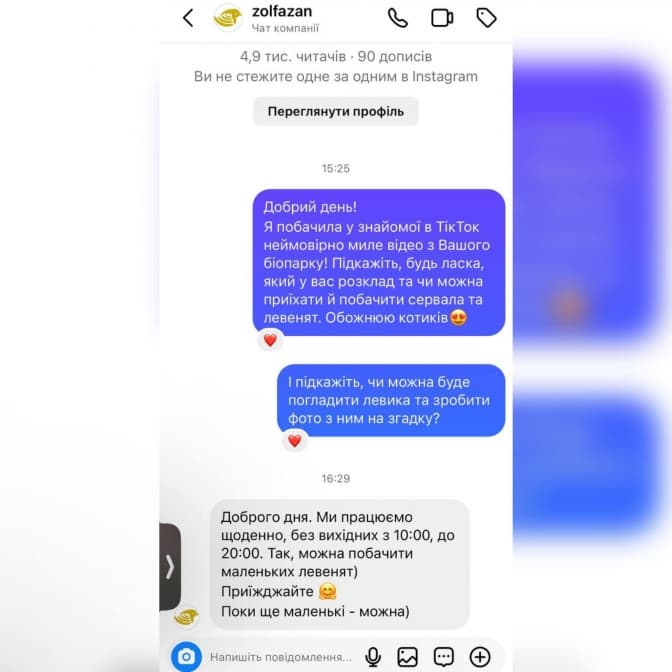 Зоозахисники запитали в адміністрації бази «Золотий фазан» під виглядом звичайних відвідувачів, чи можна фотографуватися з левенятами. Відповідь була позитивною.