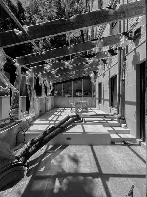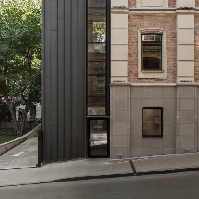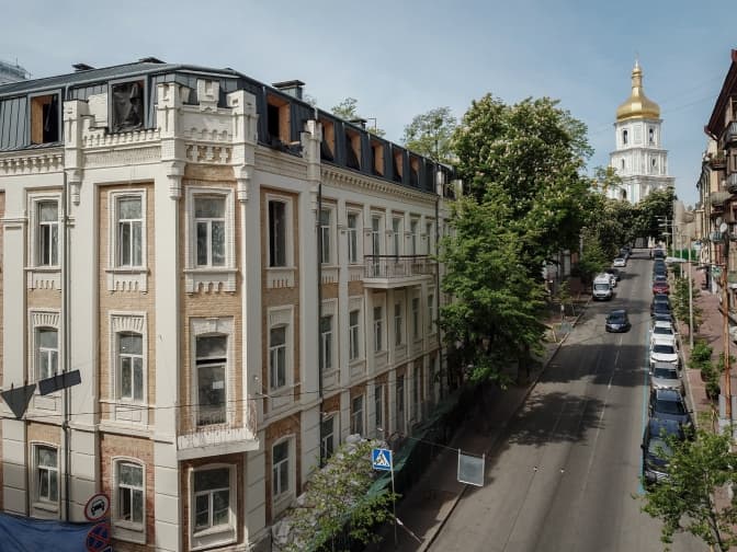 «Ми відчистили фасад будинку від нашарувань фарби різних кольорів і періодів та відкрили оку традиційну для київських будівель того періоду жовту цеглу. Рідний цоколь був частково втрачений за часів реконструкції вулиці Софіївської, тому ми розробили індивідуальне облицювання з бетонних фігурних елементів з камʼяною крихтою», – розповідають у Balbek Bureau.