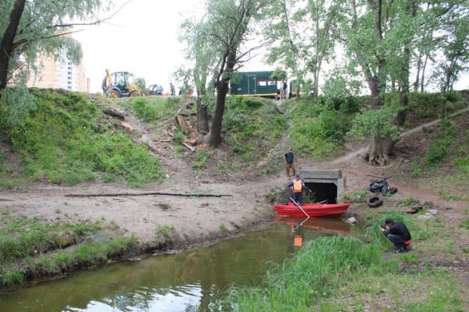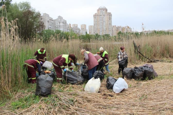 Під час толоки прибрали сміття на ділянці вздовж просп. Миколи Бажана, зі сторони вул. Драгоманова, та почистили саму водойму.