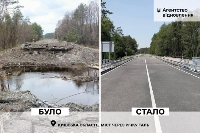 На трасі Київ – Іванків – Овруч відкрили рух мостом через річку Таль, який підірвали російські окупаційні війська, відступаючи з Київської області. Про це повідомили у Державному агентстві відновлення та розвитку інфраструктури України.