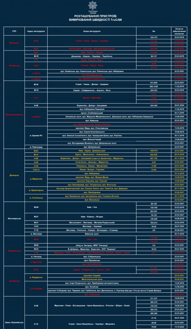 «Відтепер на нових 260 ділянках автомобільних доріг працівники поліції контролюють за швидкісним режимом транспортних засобів за допомогою 137 приладів TruCAM», – розповіли в пресслужбі патрульної поліції.