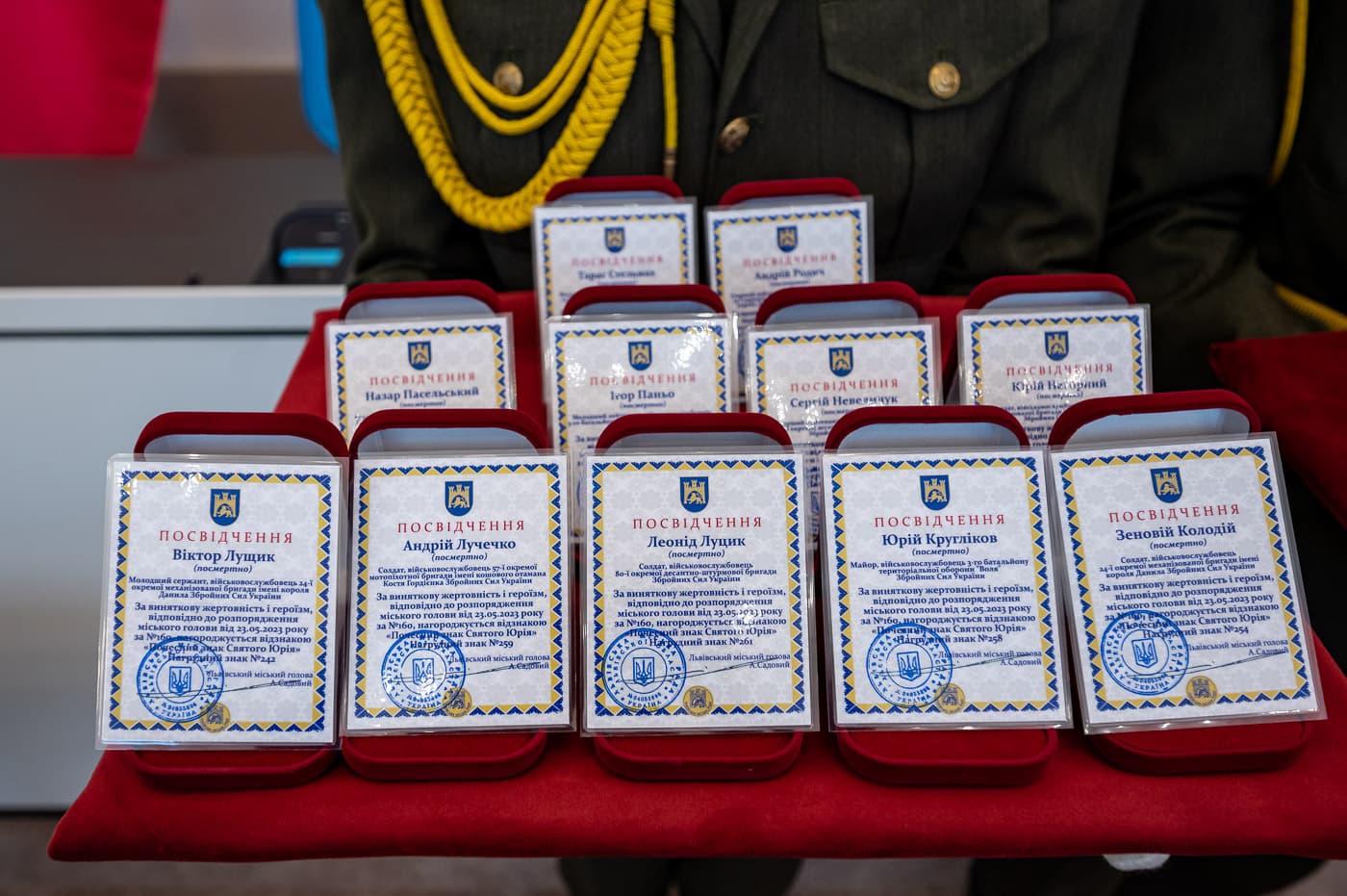 «Ми вручимо нагороди родинам тих, хто загинув першими у цій війні ще у 2014 році. І далі поступово зустрічатимемось й з іншими. Такі нагороди (посмертно) отримають усі львівʼяни, які віддали своє життя за нас з Вами. Сама церемонія нагородження відбуватиметься з нагоди великих державних та національних свят», — зазначив керівник департаменту «Адміністрація міського голови» Євген Бойко.