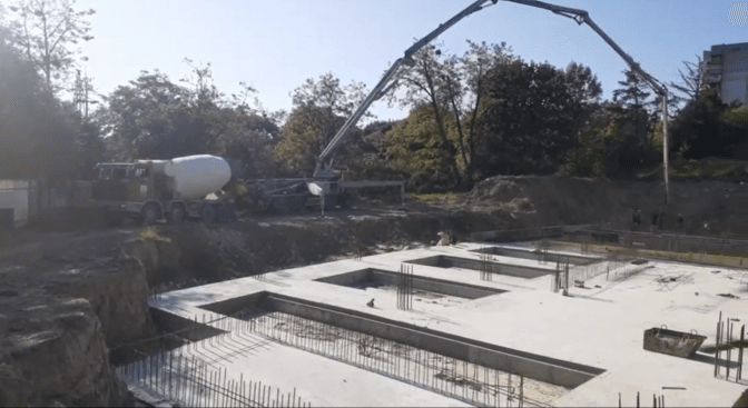 За зиму компанія Resident Development завершила підготовчі будівельні роботи. Навесні встановили палі під фундамент – адже на ділянці дуже непростий рельєф та складна геологія. Тепер уже є залитий фундамент частини будівлі, водночас паралельно ставлять палі на іншу частину. Адже школа на Героїв Крут матиме цікавий, вписаний у рельєф дизайн. А також на прохання освітян, із якими на стадії проєктування провели переговори і врахували усі зауваження педагогів, у школі буде вбудований басейн. І у дворику – сучасний спортивний майданчик.