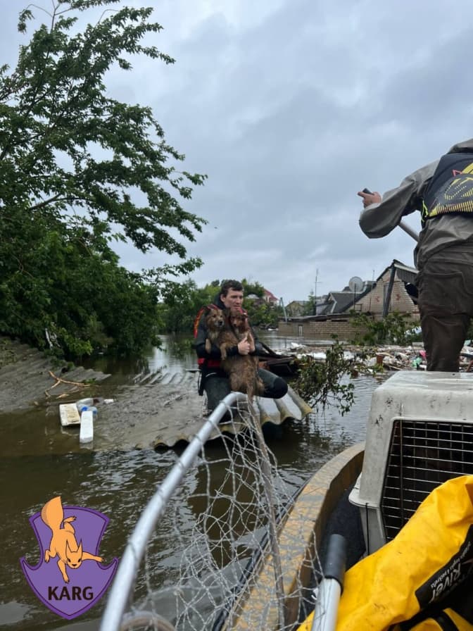 Kyiv Animal Rescue Group п'ятий день проводить рятувальні роботи на Херсонщині. Як розповіли волонтери організації, днями вони ледь не загинули, евакуюючи тварин.