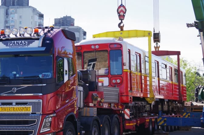 До Києва прибула друга партія вагонів метрополітену з Варшави. Про це повідомили у пресслужбі КМДА.