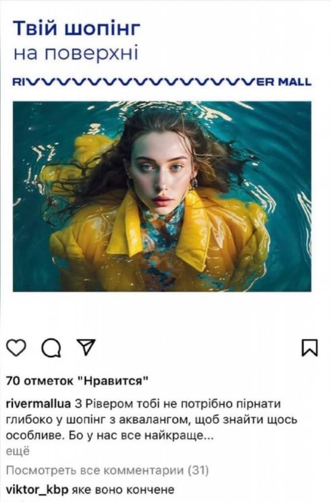 «Друзі, вимушені провести «інформаційну дезінфекцію» та роз'яснити ситуацію, що складається навколо рекламних бордів ТРЦ. Назва нашого ТРЦ – River Mall, у візуальному стилі основним елементом є хвилька, а ще ми знаходимось на березі річки Дніпро. Водна тематика – це основа нашого бренд-стилю. Її ми перенесли у дизайн ТРЦ, використовуємо у зовнішній рекламі та у соціальних мережах. Тому й остання рекламна кампанія також була пов'язана з водою та шопінгом. На початку травня ми розробили та запустили креатив з дівчиною у воді та слоганом «Твій шопінг на поверхні». 6 червня сталася трагедія у південному регіоні України, черговий теракт, який здійснила країна-агресор, підрив дамби та затоплення Херсонщини. Ми приносимо співчуття усім постраждалим внаслідок цього акту тероризму. Це і наш біль та величезне горе. Нам дуже прикро, що після затоплення Херсонщини наша реклама викликала у вас негатив та могла образити ваші почуття. На початку травня, при створенні цієї реклами ми й подумати не могли, що таке станеться, та наш позитивний меседж про шопінг буде недоречним через таку трагічну подію», - йдеться у повідомленні.