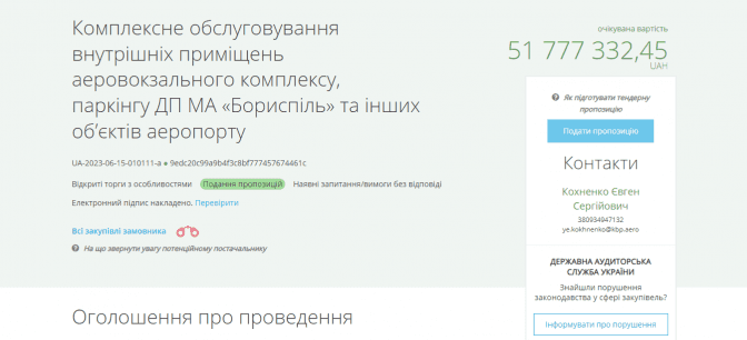 Послуги мають надаватися в період з 1 серпня 2023 по 30 липня 2024 року, тобто протягом 12 місяців. Очікувана вартість послуг становить 51 млн 777 тис. 332 грн сорок п'ять копійок. Кінцевий строк подання тендерних пропозицій 28 червня цього року.