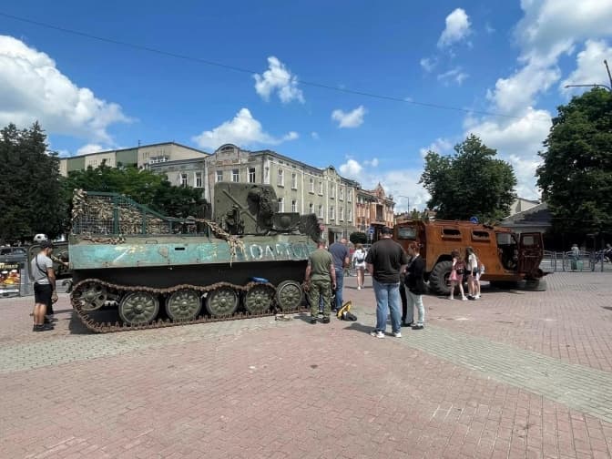 Нагадаємо, минулого року на площі Ринок показали знищену Збройними Силами України російську техніку. На експозиції було представлено: російський танк Т-72, самохідні артилерійські установки 2С1 «Гвоздіка» та 2С19 «Мста-С», ракетно-зенітний комплекс «Бук» та протитанковий ракетний комплекс «Штурм» (на базі МТЛБ). Переглянути фото можна тут