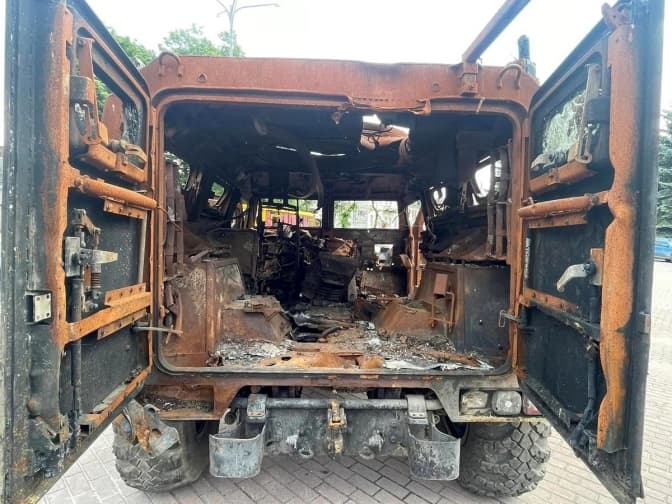 «Будителі» українського народу, які тут увіковічені в камені, та стрияни спостерігатимуть, як іржавіє техніка окупантів під небом та Прапором України В металобрухт її перетворили бійці Стрийська Сотня Січові Стрільці батальйону «Карпатська Січ» на Лиманському напрямку», – йдеться в повідомлені.