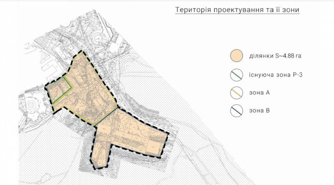 Антон Коломєцев зауважив, що місто окреслило територію для проєктування – це 4,88 га. З них на 2 га мають бути рекреаційні землі.