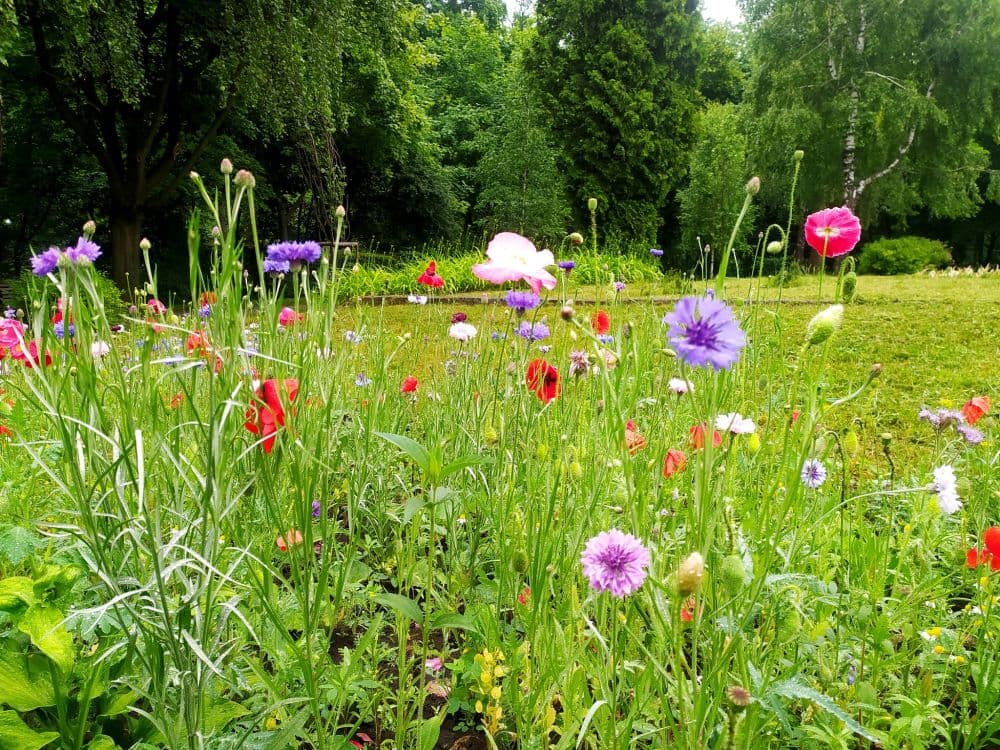 На нижньому оглядовому майданчику Високого Замку у Львові розквітла галявина з лучними травами. Зараз тут активно цвітуть різнокольорові маки і волошки, на черзі – ешольція, космея, нагідки, чорнушка та інші квіти.