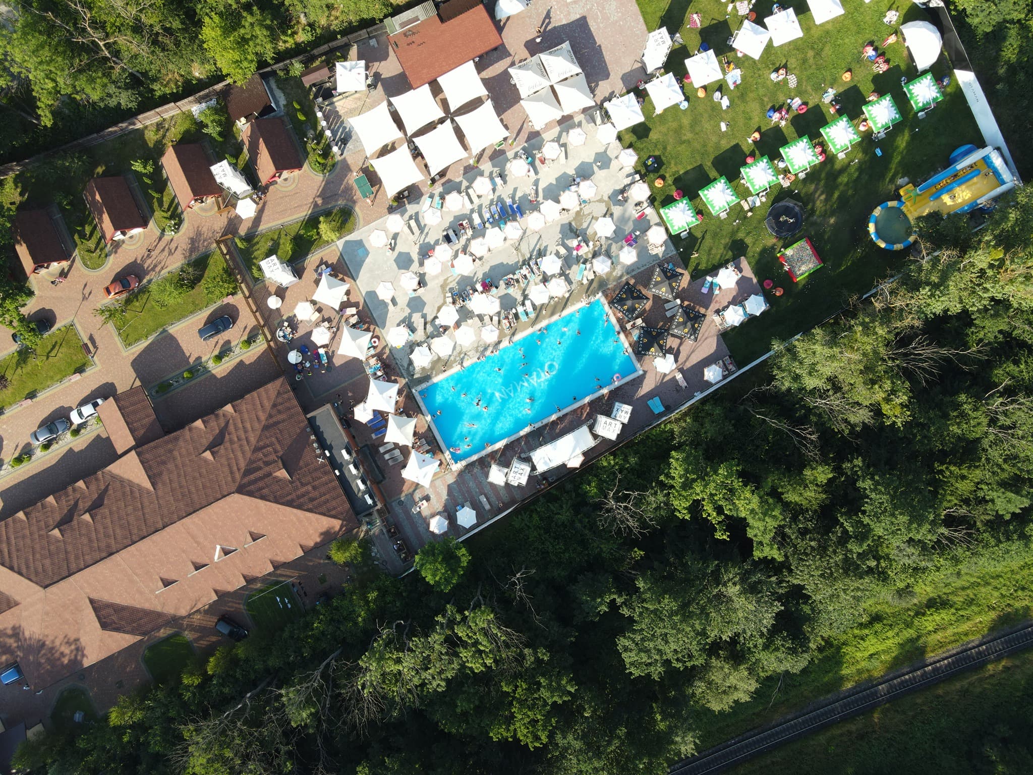 Ця база відпочинку вміщує в собі багато розваг для дітей та дорослих. На території є пляж та озеро.