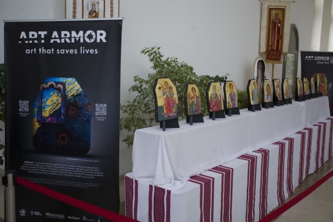 У Патріаршому соборі Воскресіння Христового в Києві експонують ікони, написані на плитах бронежилетів, які врятували життя українським захисникам. Про це повідомили у пресслужбі.