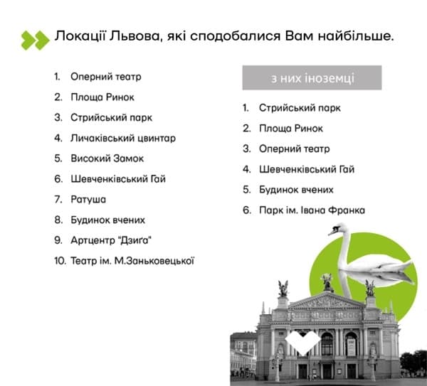 5. Найбільш туристичні локації Львова. Опитування. Найчастіше гості міста прибувають сюди потягом (56%), також власним автомобілем (26,3%) та рейсовим автобусом (12,3%). Їхні середні витрати у Львові на одну особу в день – 1450 грн. (36 євро). Для іноземців це 2065 грн. (52 євро).
