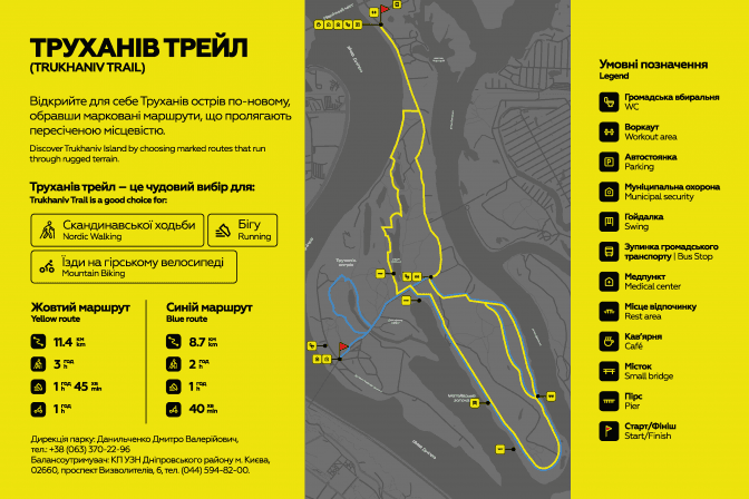 Зазначається, що «Труханів трейл» – ініціатива міської влади. Маршрут розрахований для бігу, скандинавської ходьби та їзди на гірському велосипеді.