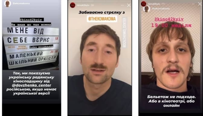 Раніше співак thekomakoma, який відвідав один із сеансів у Kino42, записав сторіз на фоні афіші кінотеатру з питанням до своєї авдиторії, чи їм комфортно дивитися фільми російською мовою під час війни. Інформація про російськомовні фільми викликала хвилю обурення, яка прокотилася соцмережами Kino42 і Довженко-Центру. Проте чимало людей висловили підтримку інституціям і взялися роз'яснювати опонентам різницю між російським і українським російськомовним кіно, створеним у період Радянського Союзу.