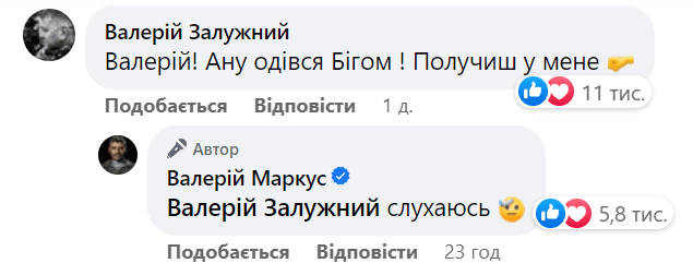 «Валерій! Ану одівся бігом! Получиш у мене», – написав Залужний. Його зауваження вже вподобали більше 11 тис. українців, захоплені ставленням головнокомандувача до своїх підлеглих.